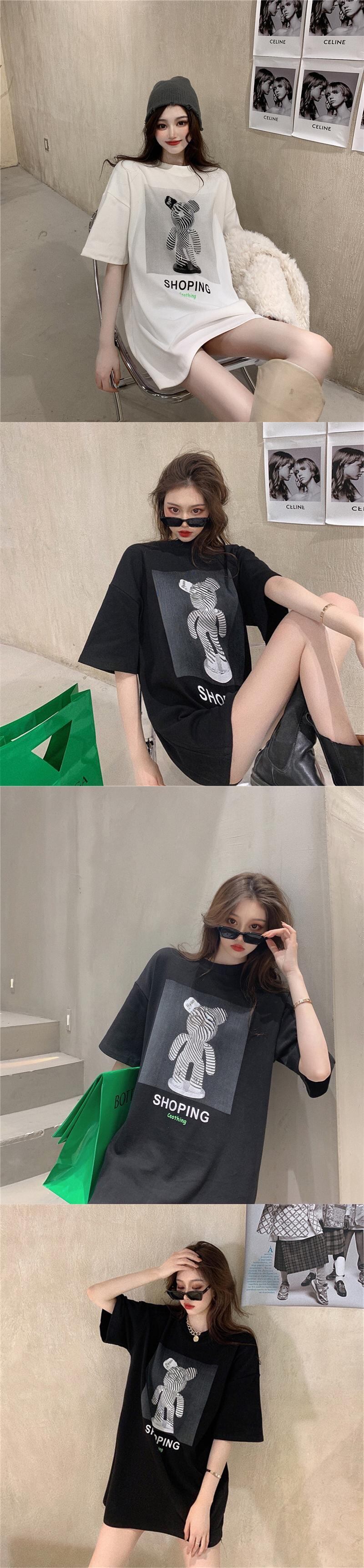 Tシャツ シャツ ルーズスプリングホワイトトップス 春物 ブラックストロベリース74928423838