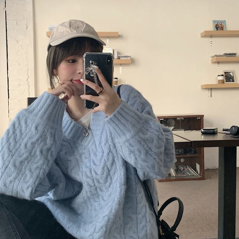 セーター ジャケット レディースオータムウィンタースタンダードスタイルルーズプルオーバー トップス レトロ 秋物 冬物 ブラックストロベリース90630651892