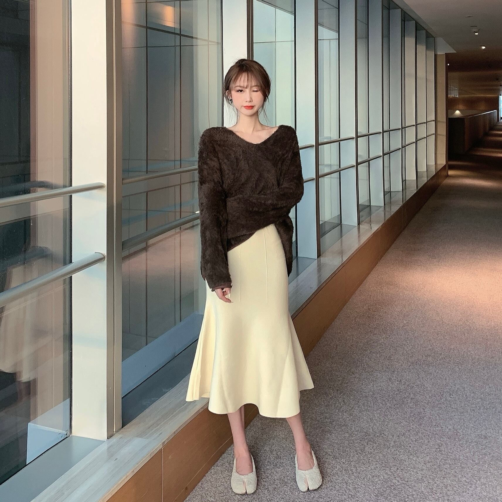 色:アプリコットマーメイドスカート,黒のフィッシュテールスカート,緑のセーター,茶色のセーター,ダークブルーのセーター