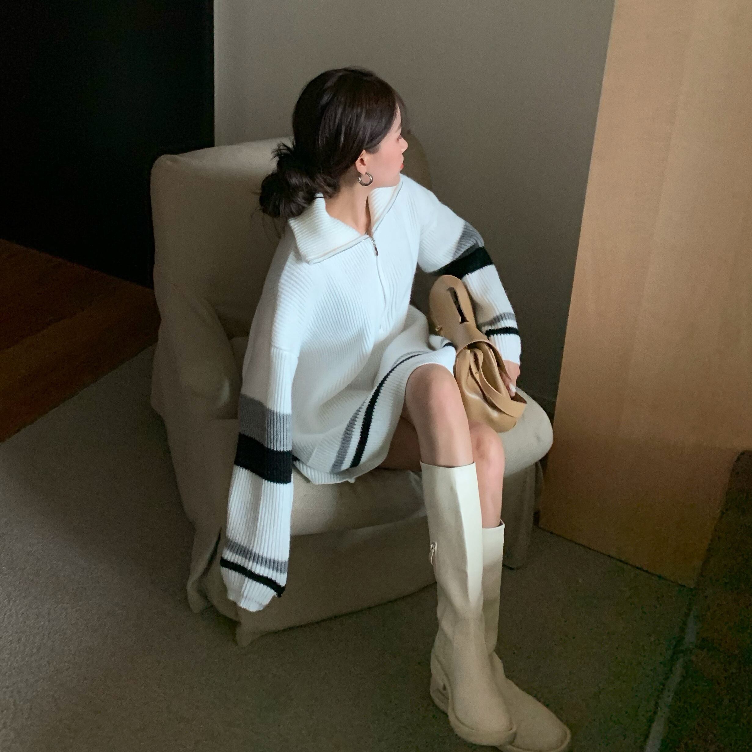 セーター スプリングオータムルーズジッパーグレートップス 春物 秋物 ブラックストロベリース20156578739