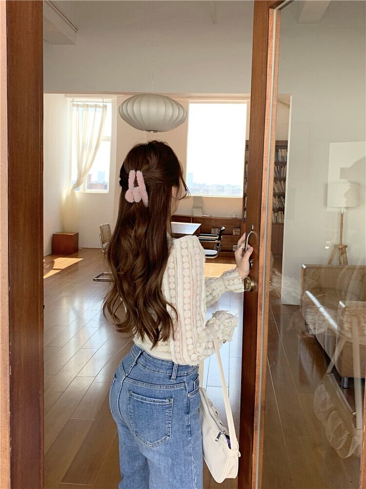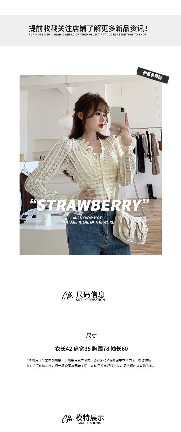 レースシフォンシャツ スプリングホワイトスタイルショートトップス ロング 春物 ブラックストロベリース6667247560
