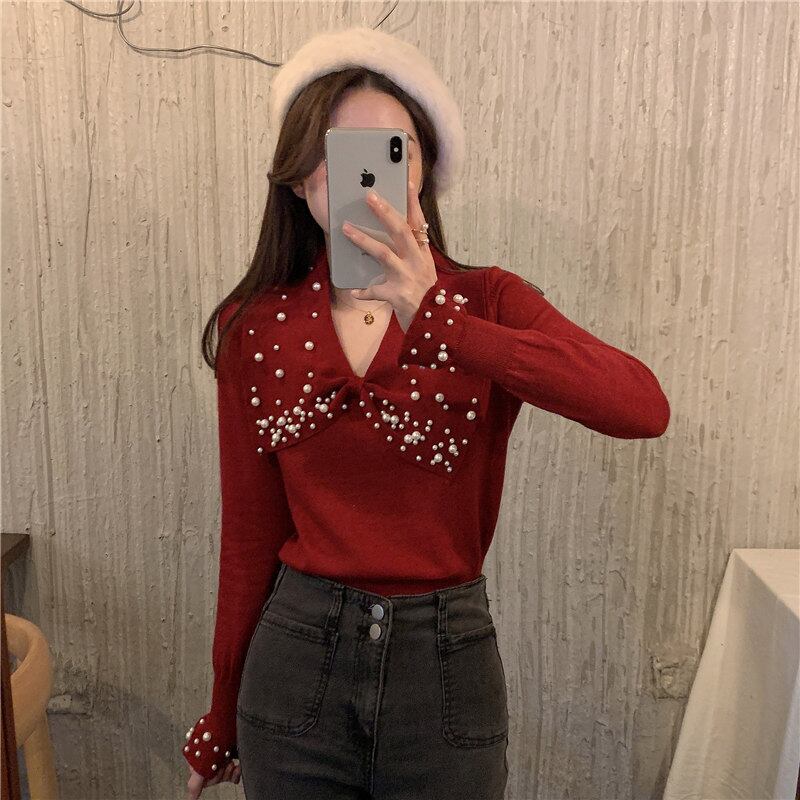 ニットセーター スタンダードレッドシャツ スプリングスリムトップス レトロ 春物 ブラックストロベリース4864192214