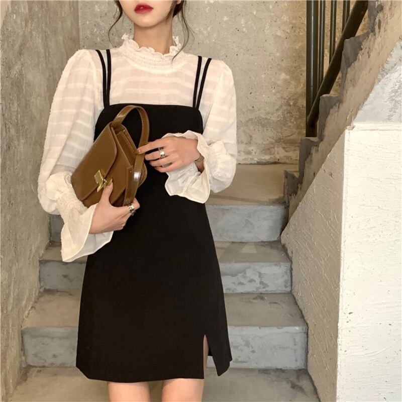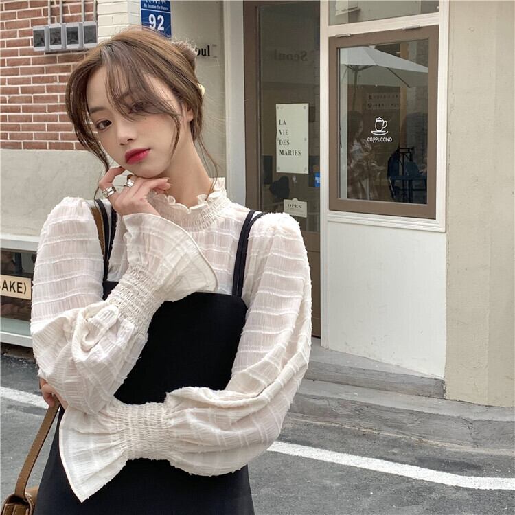 レースシフォンシャツ カラールーズスプリングトップス ロング 春物 ブラックストロベリース31420971730