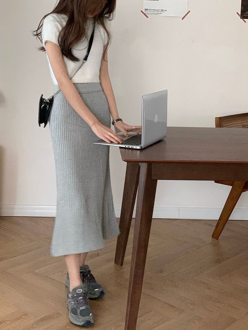 ニットスカート ウィンターハイウェストグレー 冬物 ブラックストロベリース46476327776