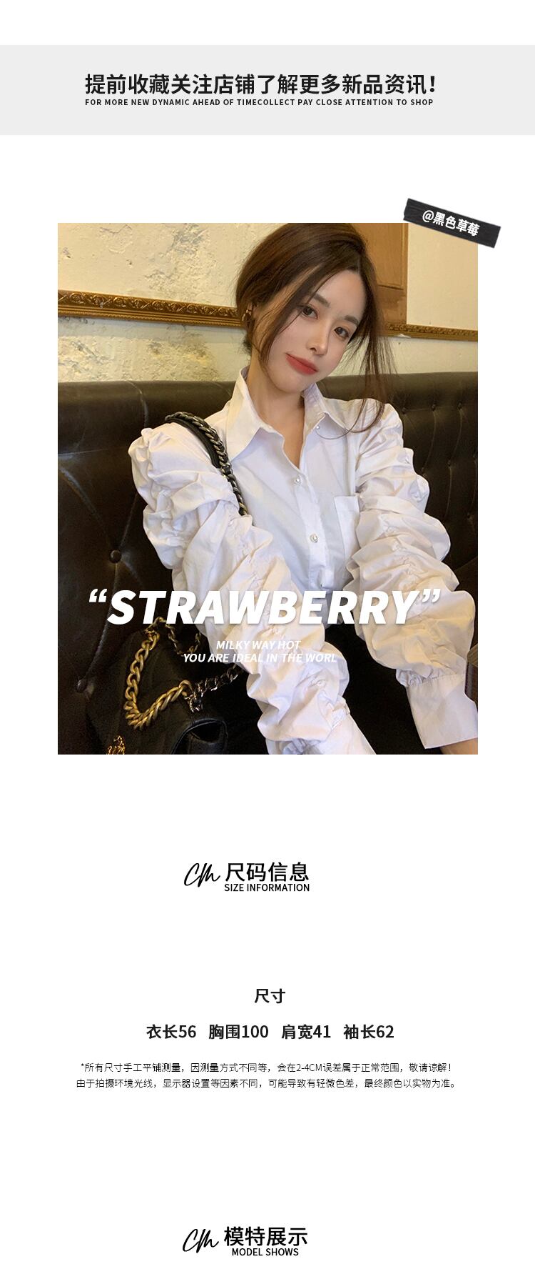 シャツ スリーブレディーススプリングホワイトルーズ ロング 春物 ブラックストロベリース9214401703