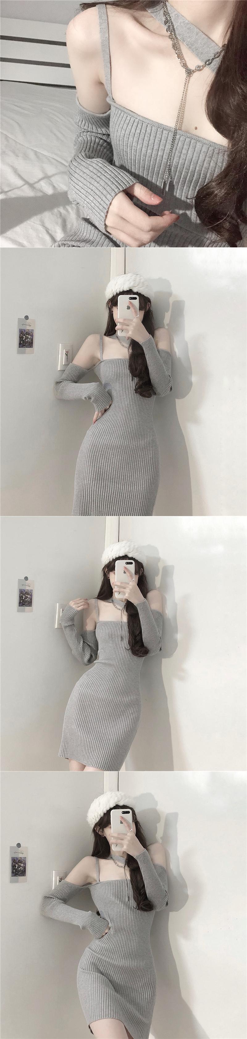 ニットドレス ウェストストラップレスショートスカート スプリングレッド ロング 春物 ブラックストロベリース65252379448