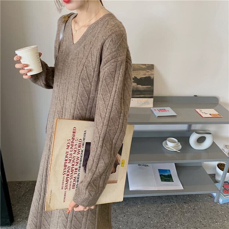ニットセーター ドレス ルーズスタイルスカート スプリング ロング 春物 ブラックストロベリース9559221837