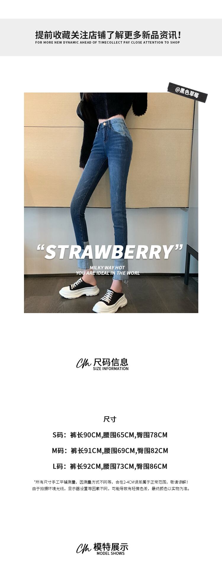 ジーンズ ハイウェスト薄手ダークスプリングオータムクロップド 春物 秋物 ブラックストロベリース87077287935