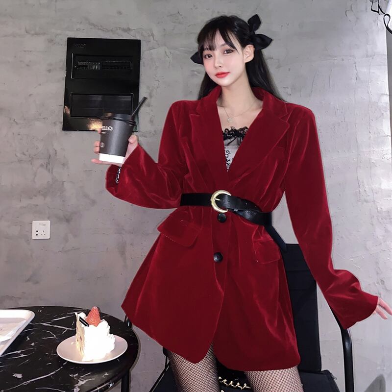 ジャケット スタンダードゴールドベルベットレッドルーズスタイルウェストオータムウィンター レトロ 秋物 冬物 ブラックストロベリース92391747031