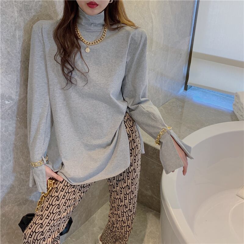 Tシャツ シャツ ホワイトチェーン スプリングトップス ロング 春物 ステッチ ブラックストロベリース74565476738