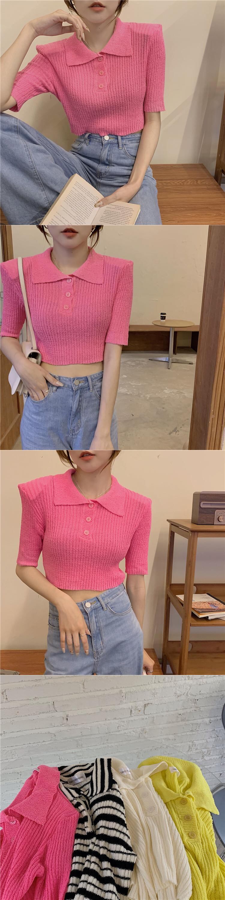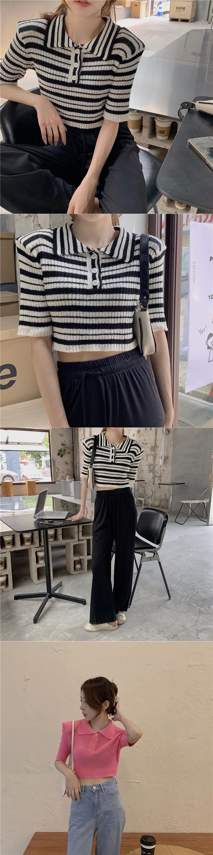 カラーセーター Tシャツ サマー薄手ショートトップス ピンク 夏物 ブラックストロベリース49041411498