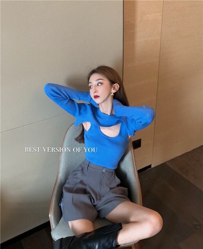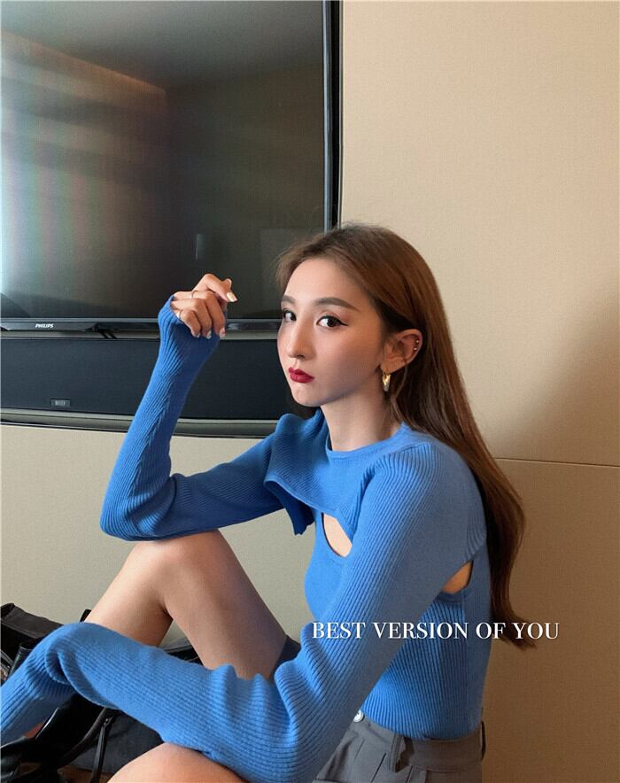 ニットセーター シャツ スプリングスタイルブラックショートトップス ロング 春物 ブラックストロベリース98499199170