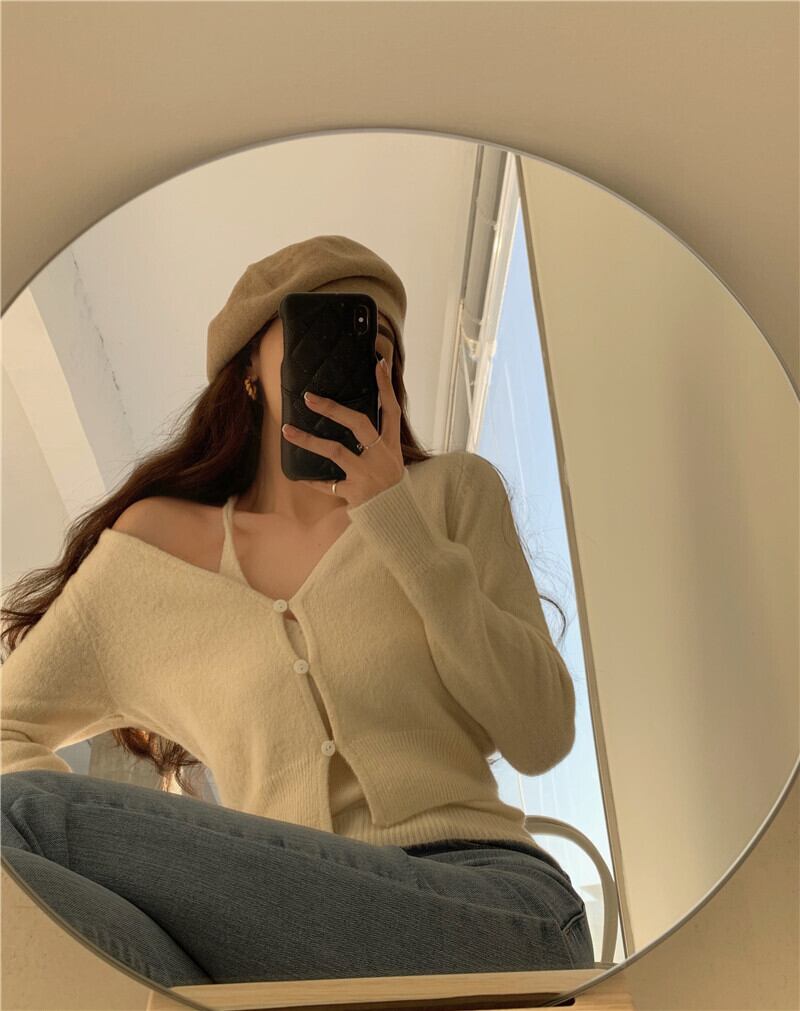 ニットショートカーディガンスプリングセーター コート ホワイトスリムトップス ロング 春物 ブラックストロベリース70713419383