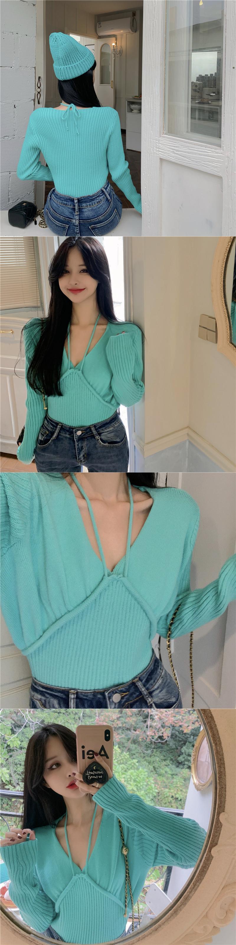 ニットセーター シャツ ホルターオータムウィンターレッドトップス ロング 秋物 冬物 ブラックストロベリース91492089116