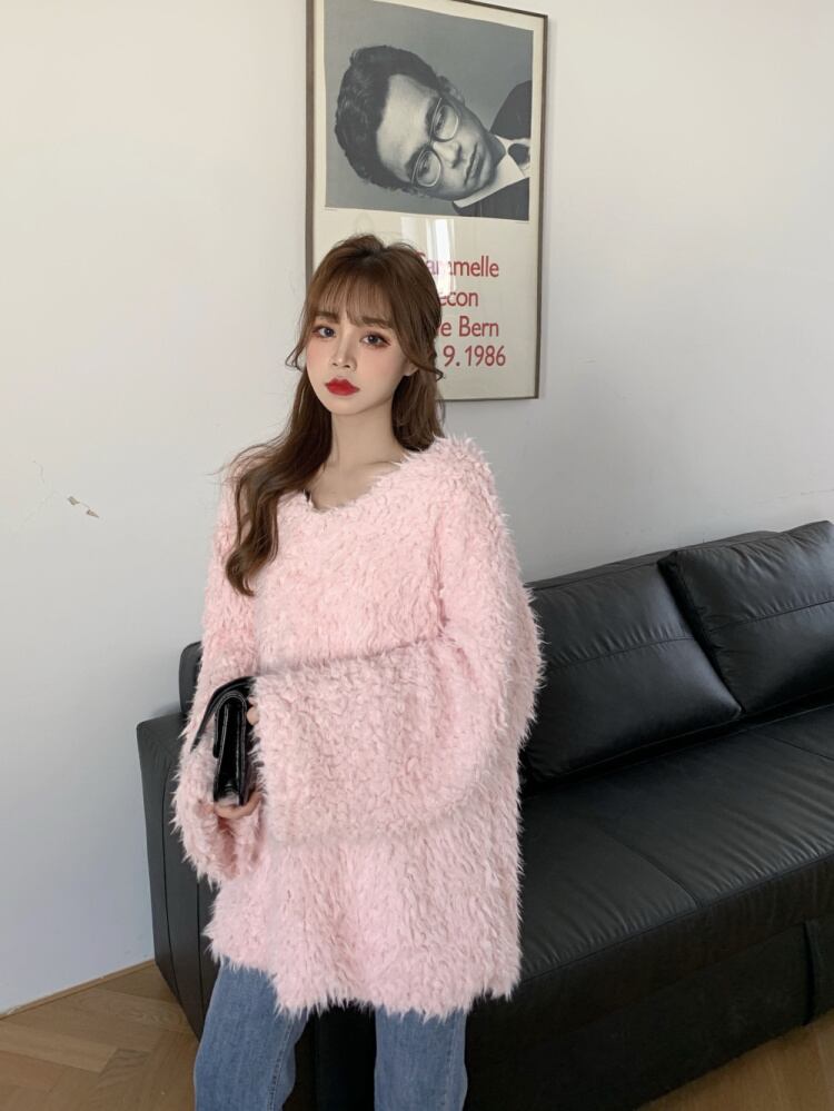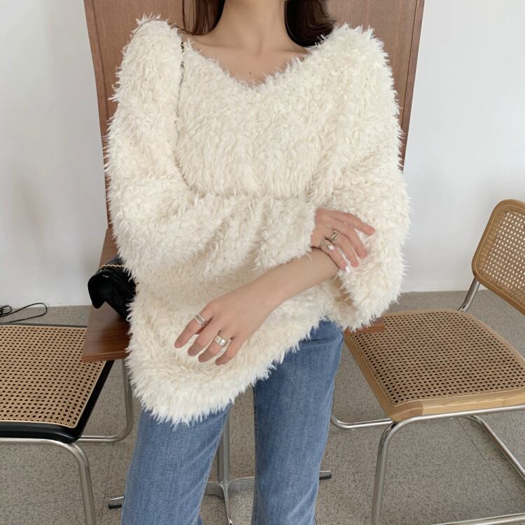 セーター ルーズホワイトプルオーバー ブラウス スプリングジャケット 春物 ブラックストロベリース97925797592