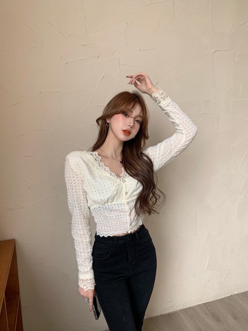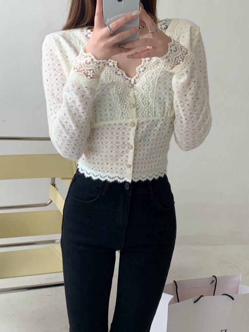レースシフォンシャツ レディーススプリングホワイトスタイル ロング 春物 ブラックストロベリース40711960060