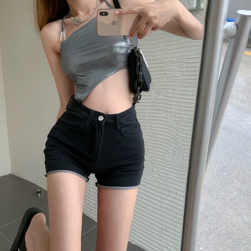 ジーンズ ウェストスリムパンツ サマーショーツ ブラック 夏物 ブルマー ブラックストロベリース97224810769