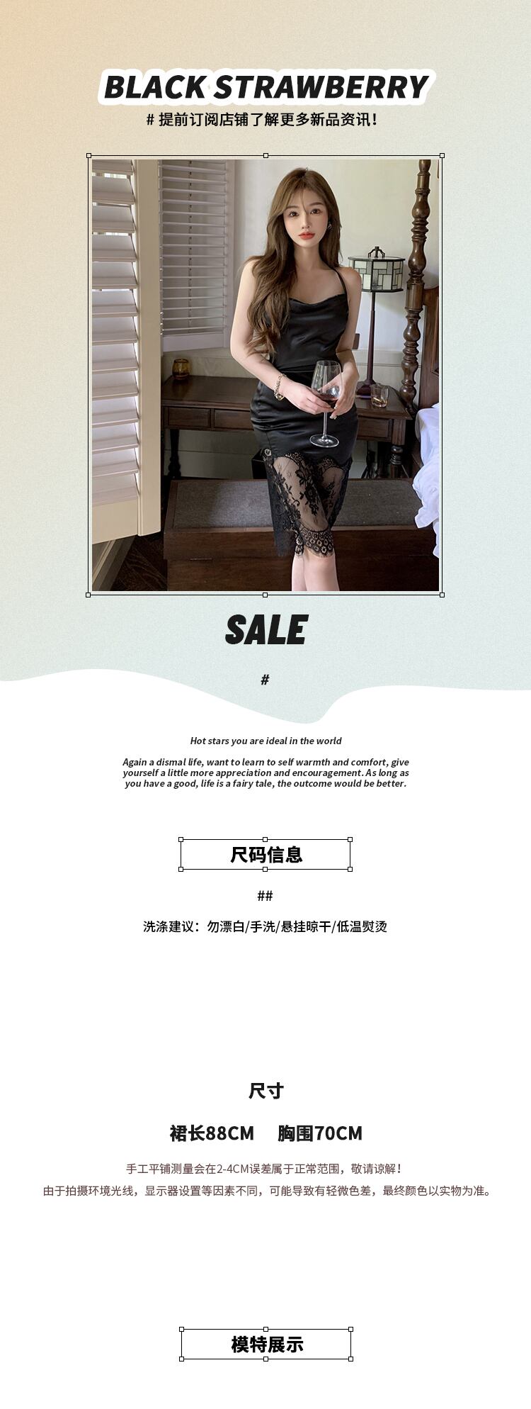 スタイルレースサテンドレス レディースサマーショートスカート スリム 夏物 スリムヒップ ブラックストロベリース95647717613