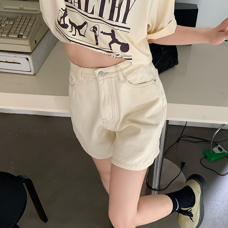 ジーンズ ハイウェストウェストスリムルーズショーツ サマー薄手パンツ 夏物 ブルマー ブラックストロベリース82302168338