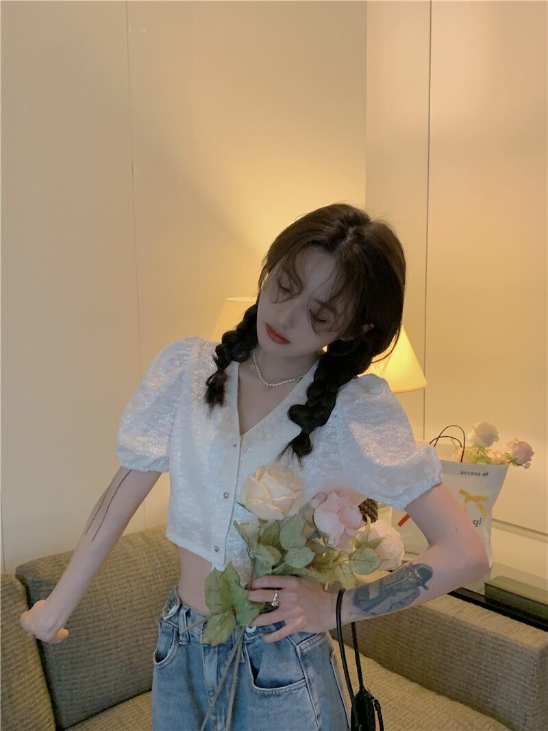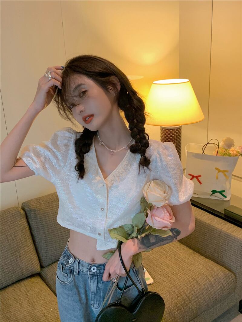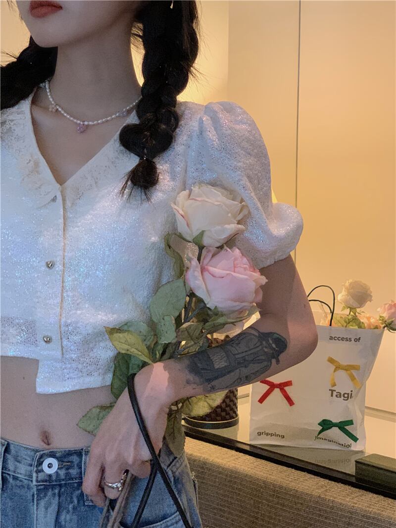 スリーブカーディガンTシャツ サマーショートVネックスリムホワイト半袖トップス ハーフスリーブ 夏物 ブラックストロベリース20392925651
