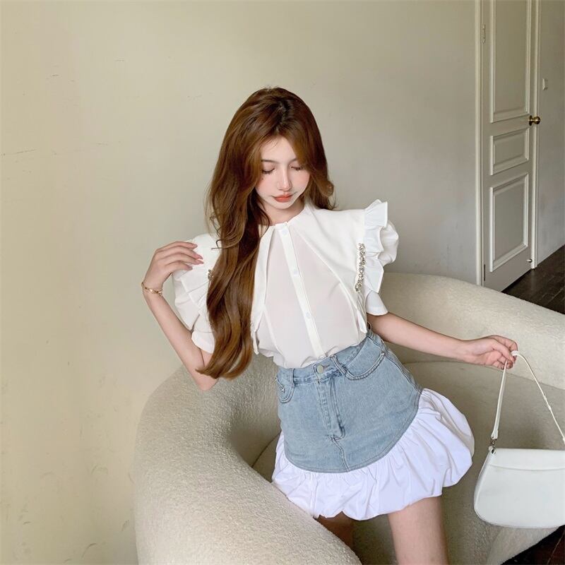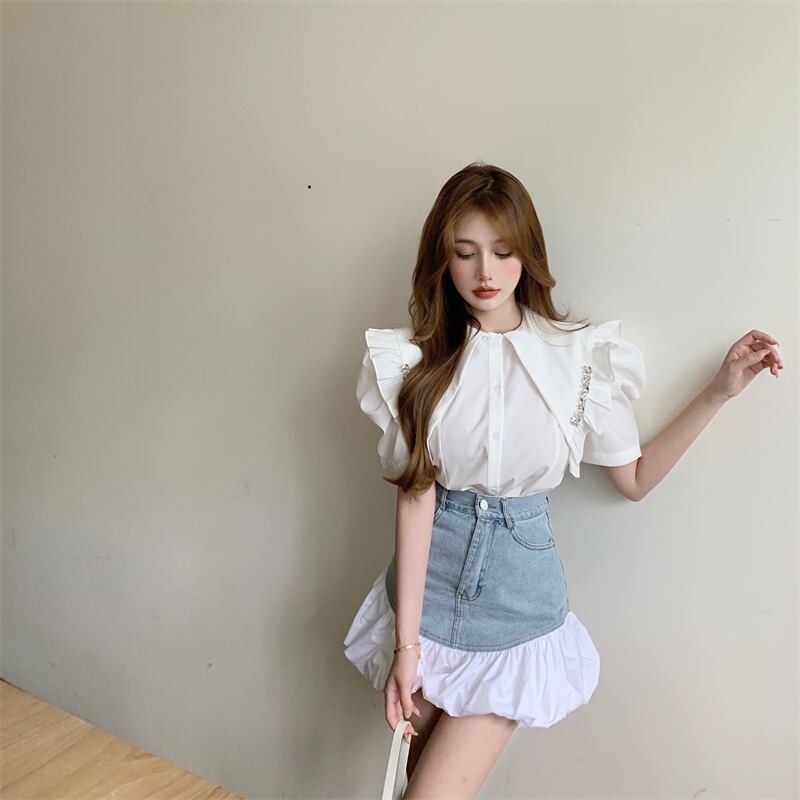 薄手Flowerデザイン ショートサマーAライン ハイウェスト 夏物 スカート フラワーデザイン ブラックストロベリース44487013626
