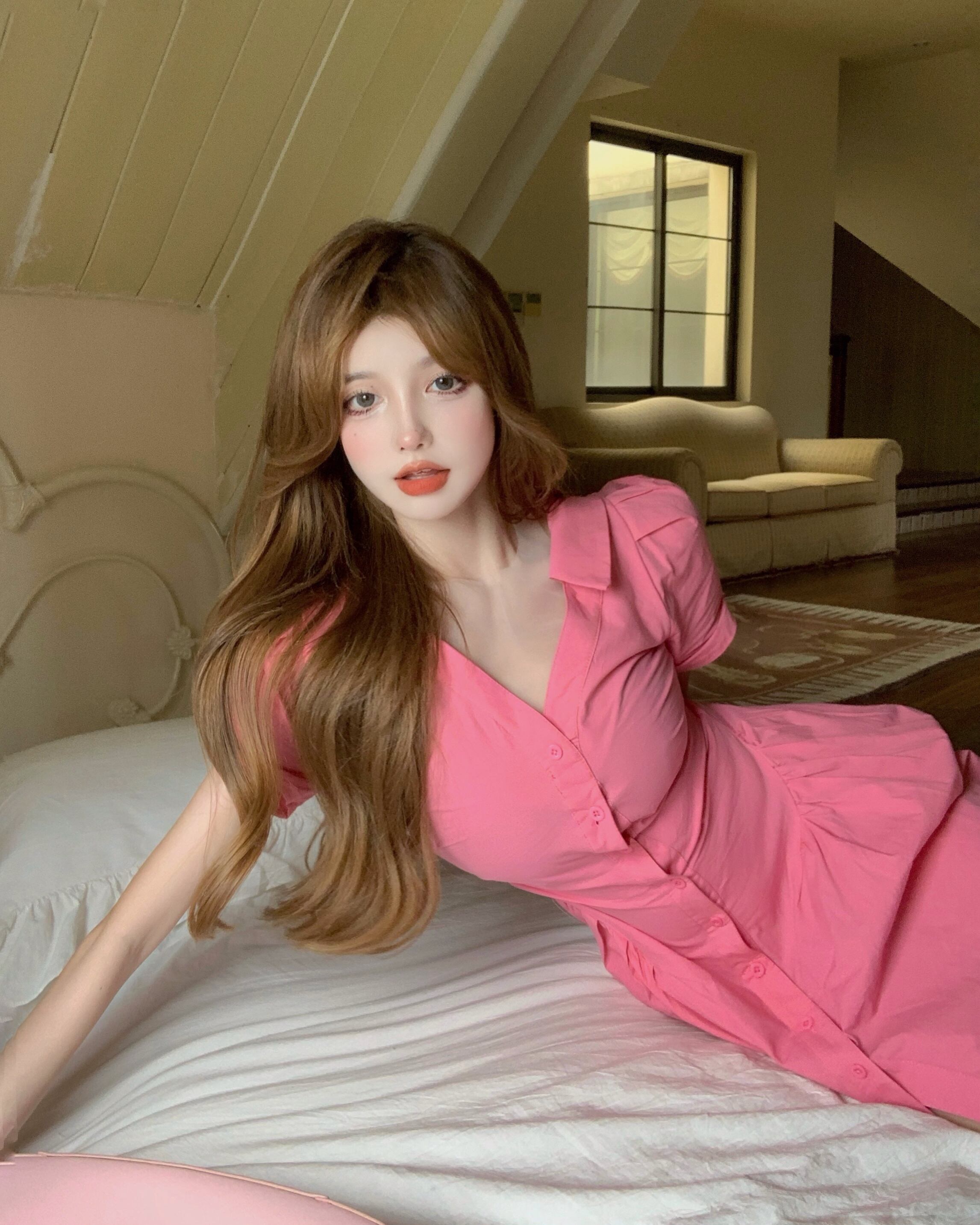 シャツ ドレス カラーレッドウェストショートスカート サマー 夏物 ブラックストロベリース52995850277
