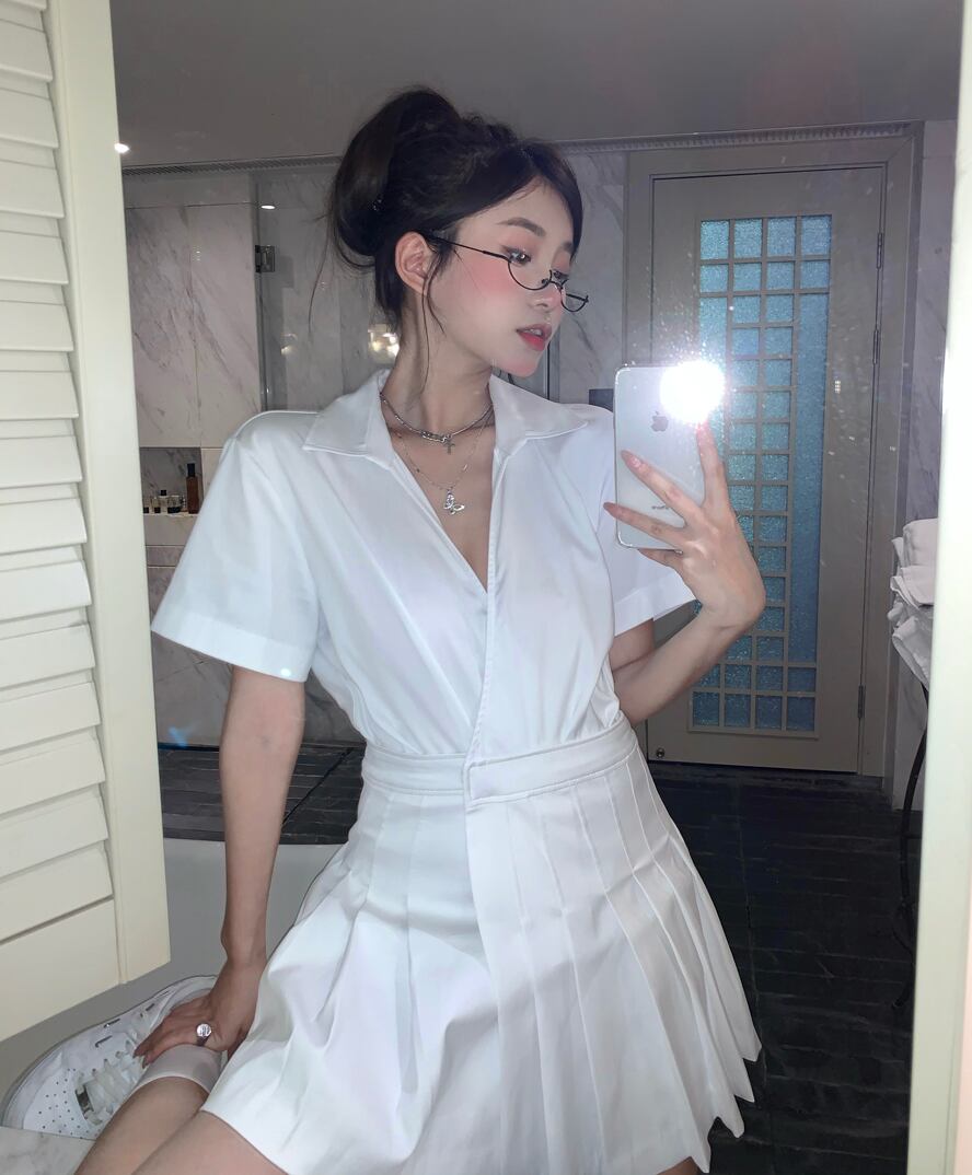 プリーツシャツ ドレス サマーショートスカート ウェスト 大人ガーリー スウィート キュート カジュアル 夏物 ブラックストロベリース12124358301