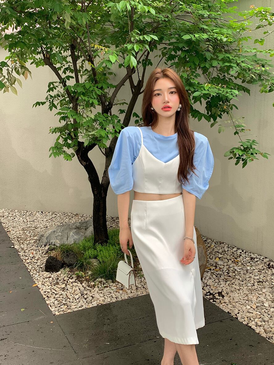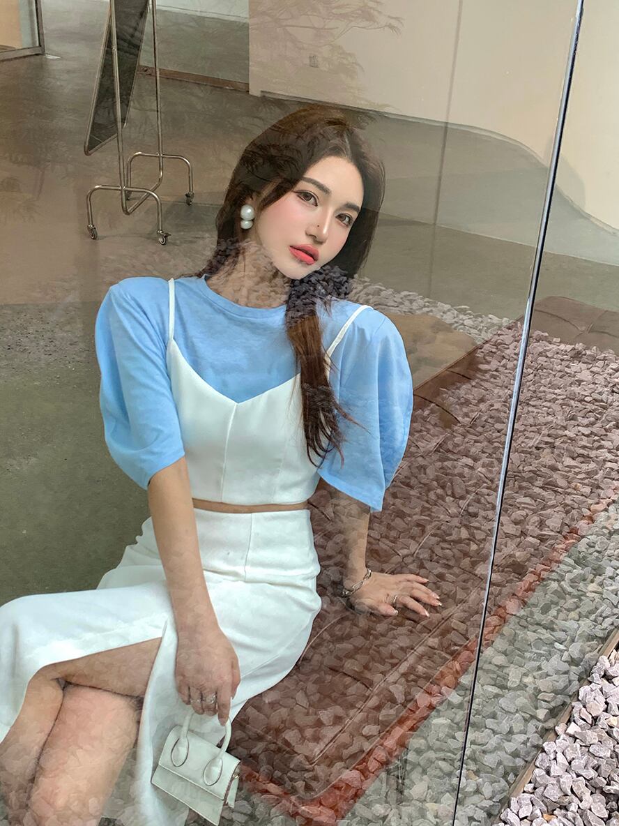 Tシャツ ブルーショートスリムトップス サマースタイル 大人ガーリー スウィート キュート カジュアル 夏物 ピュア ブラックストロベリース78212728418