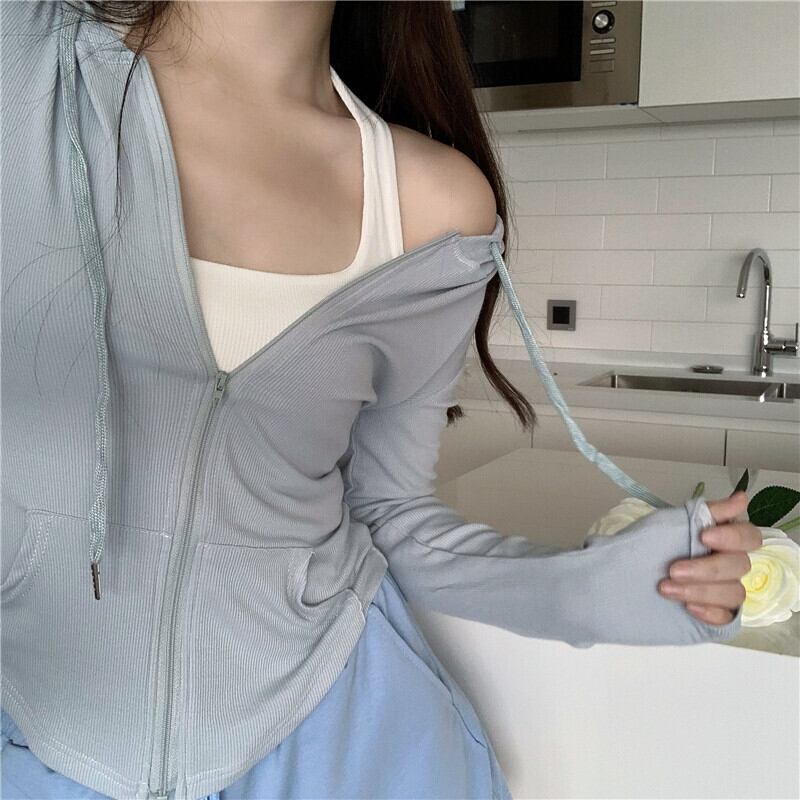 フードジッパーニットカーディガンジャケット レディースサマー薄手ブラウス ショートトップス ロング 夏物 シルク ブラックストロベリース84674782894