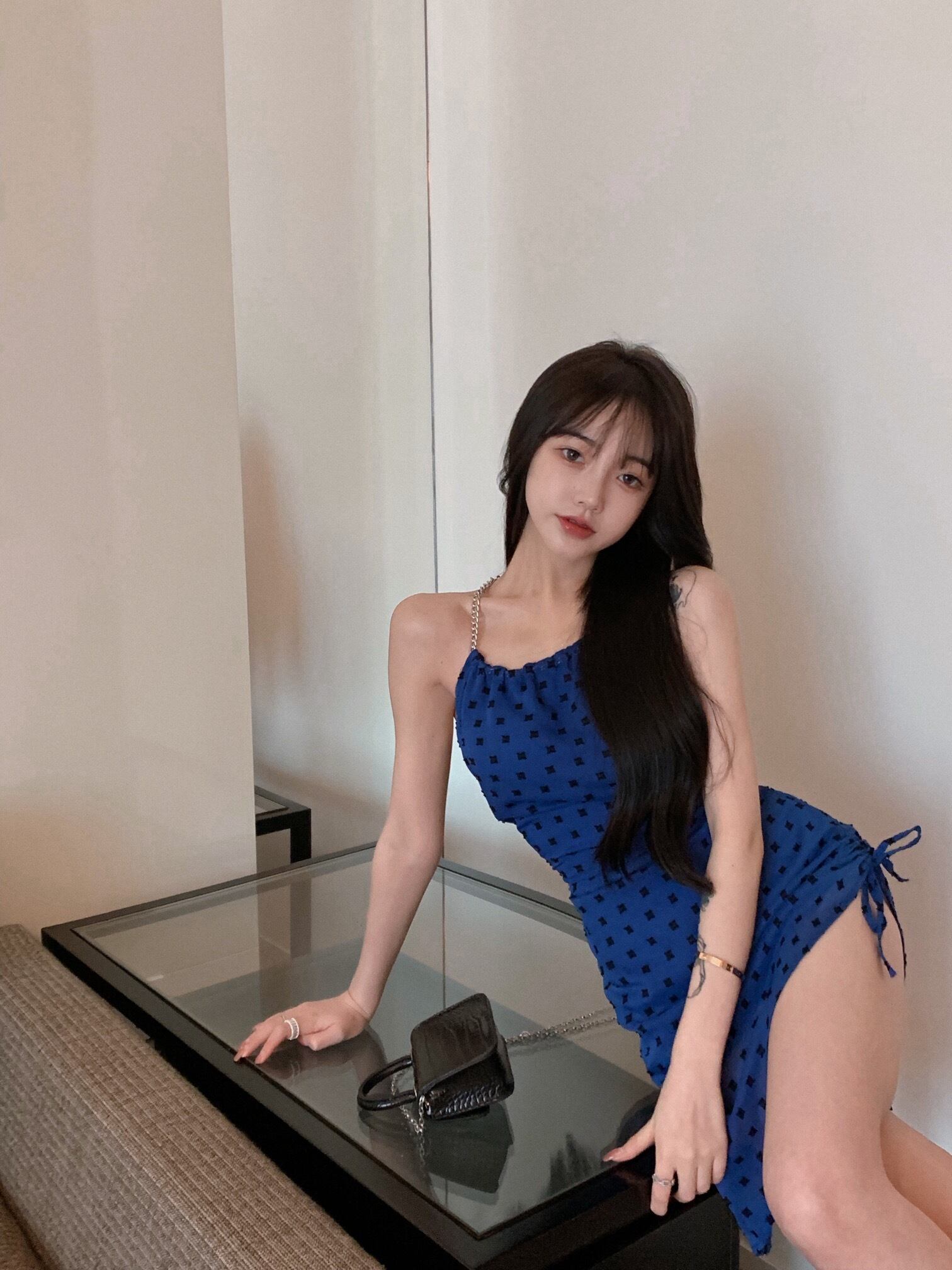 ドレス チェーン ウェストショートスカート サマーホルター 夏物 ブラックストロベリース34596278612