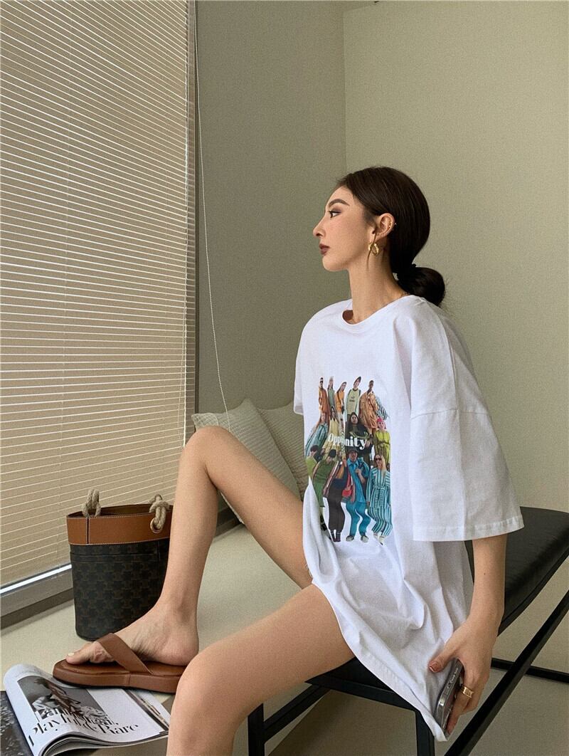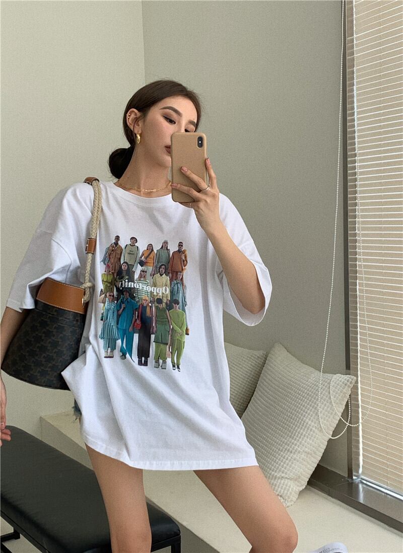 スリーブTシャツ サマースタイルロングルーズホワイトトップス かわいい 夏物 ブラックストロベリース51247283767