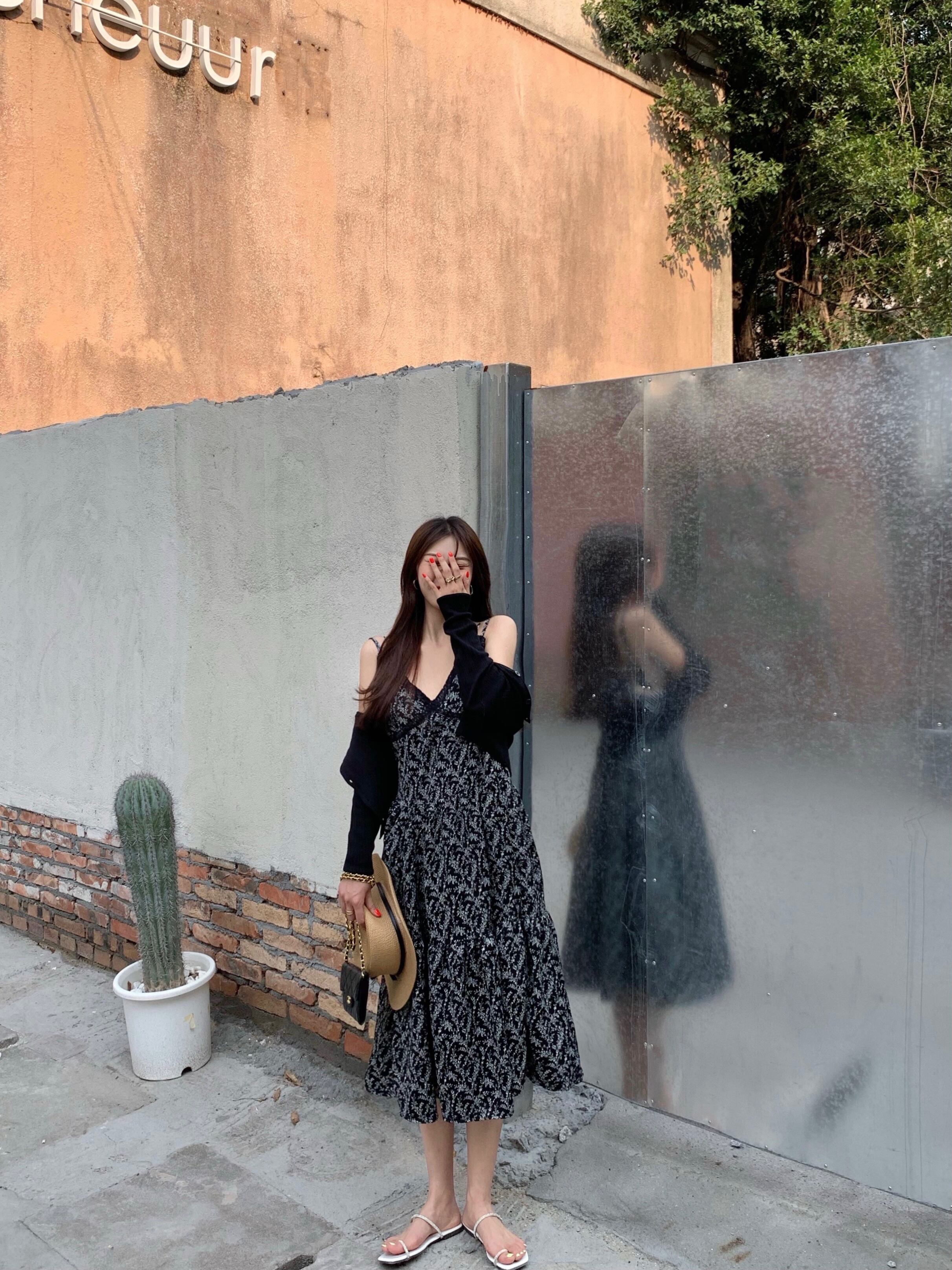 レースフローラルドレス レディースルーズ薄手スカート サマーブラック 夏物 花柄 ブラックストロベリース99946824363