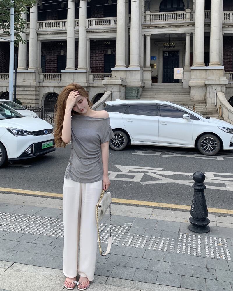 色:ピンクのTシャツ,グレーのTシャツ,黒の滑りやすいパンツ,アプリコットの滑りやすいパンツ