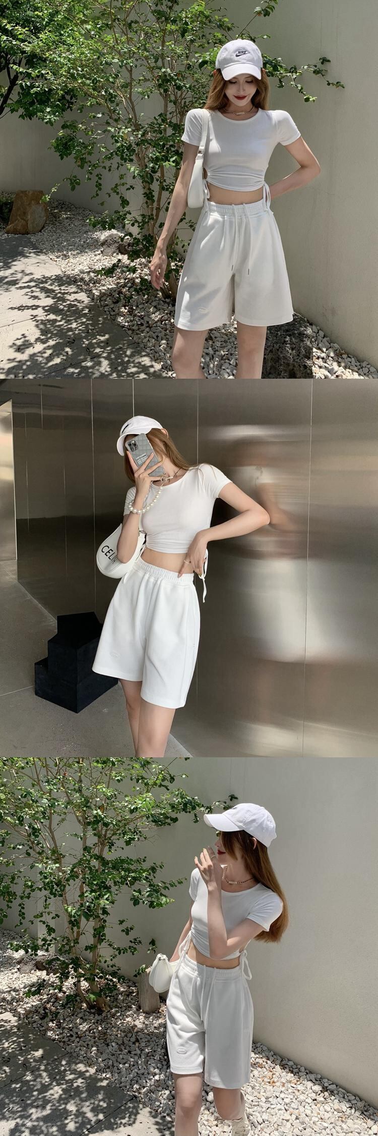 パンツ ハイウェストウェストスリムショーツ サマールーズ薄手ブルー 夏物 ブルマー ブラックストロベリース77058728055