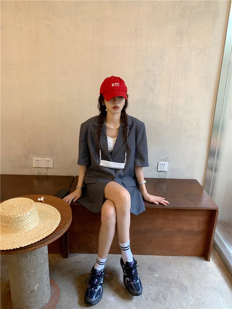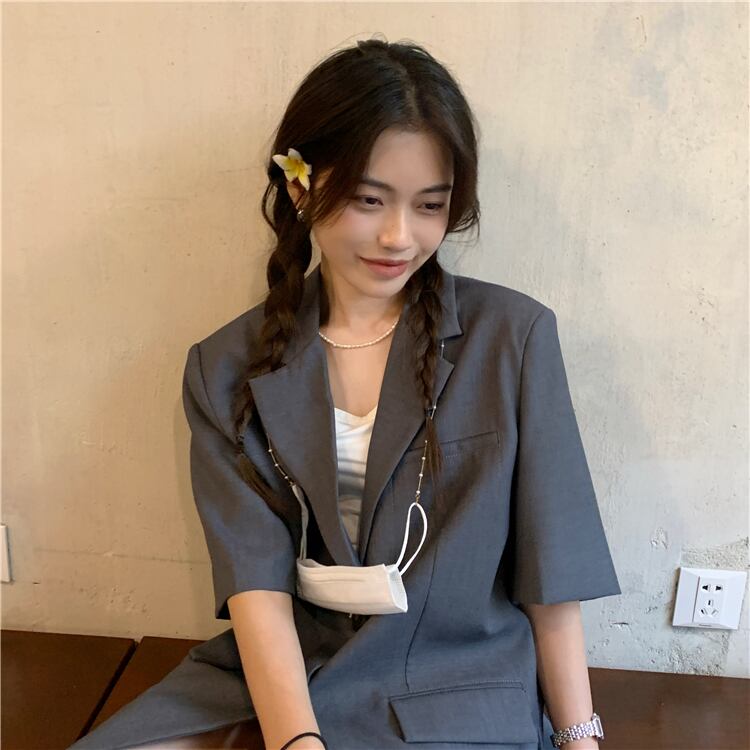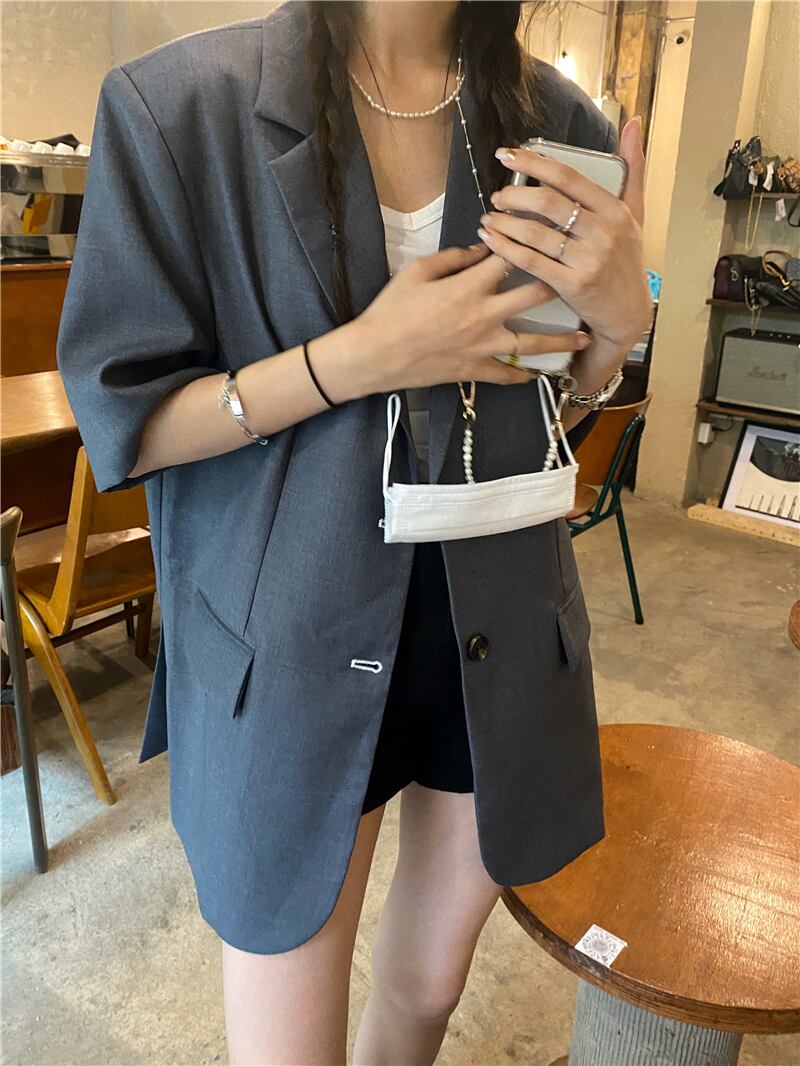 ジャケット サマースタイルルーズ薄手ロンググレー ストリート 夏物 ブラックストロベリース7682153086