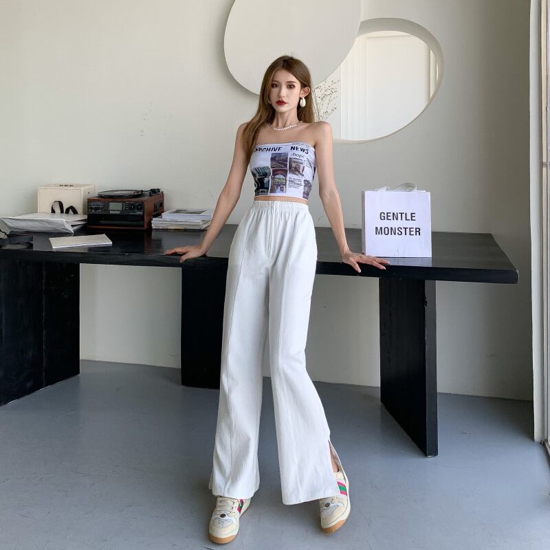 パンツ ハイウェストウェストルーズサマー薄手ホワイト 夏物 ブラックストロベリース27507075866