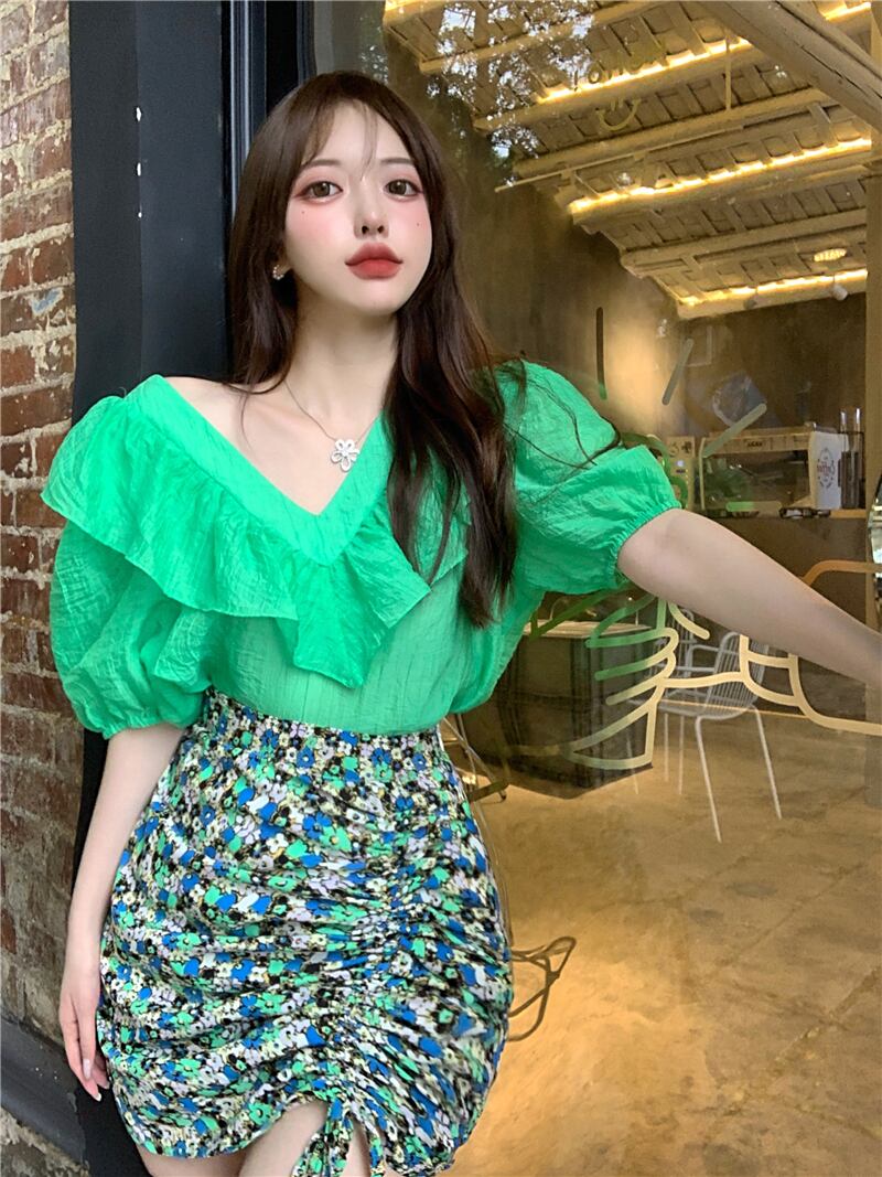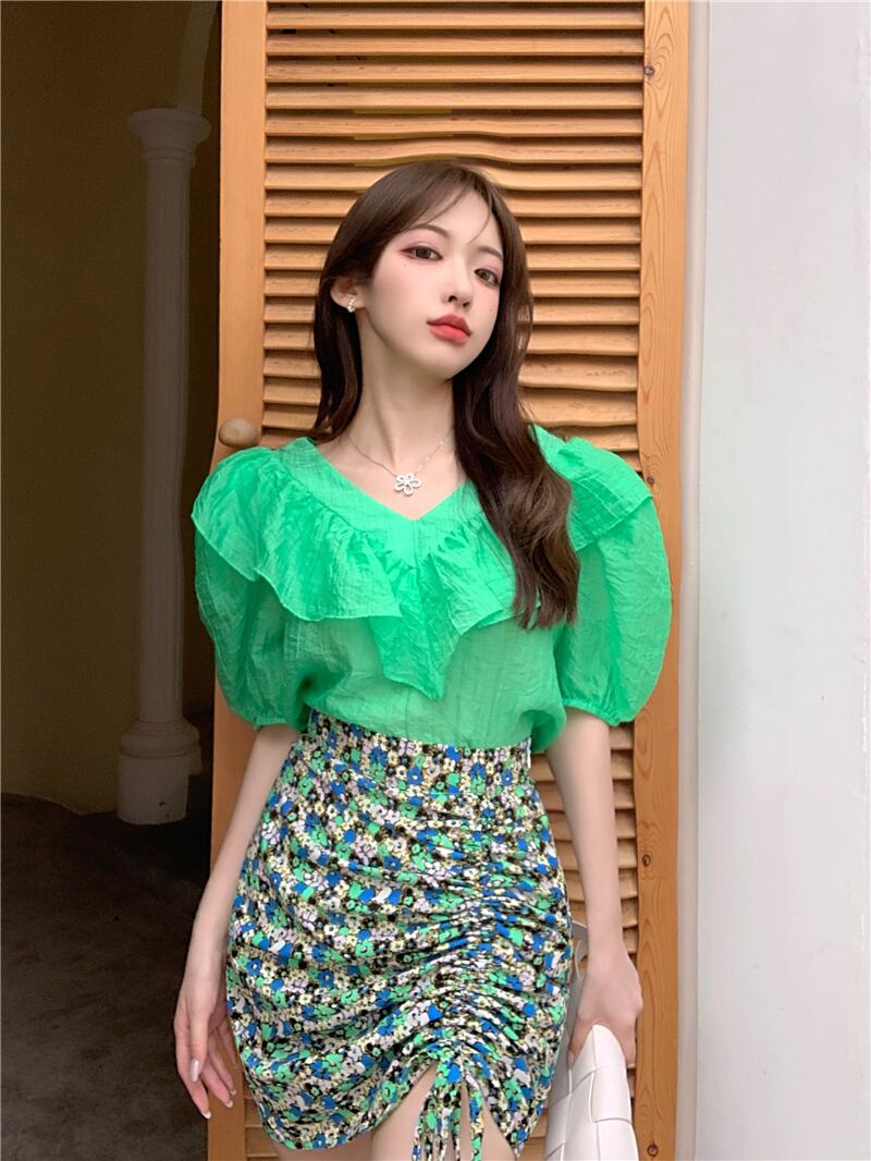 フローラルスカート ギャザーショートサマー薄手 夏物 花柄 ブラックストロベリース72906328202