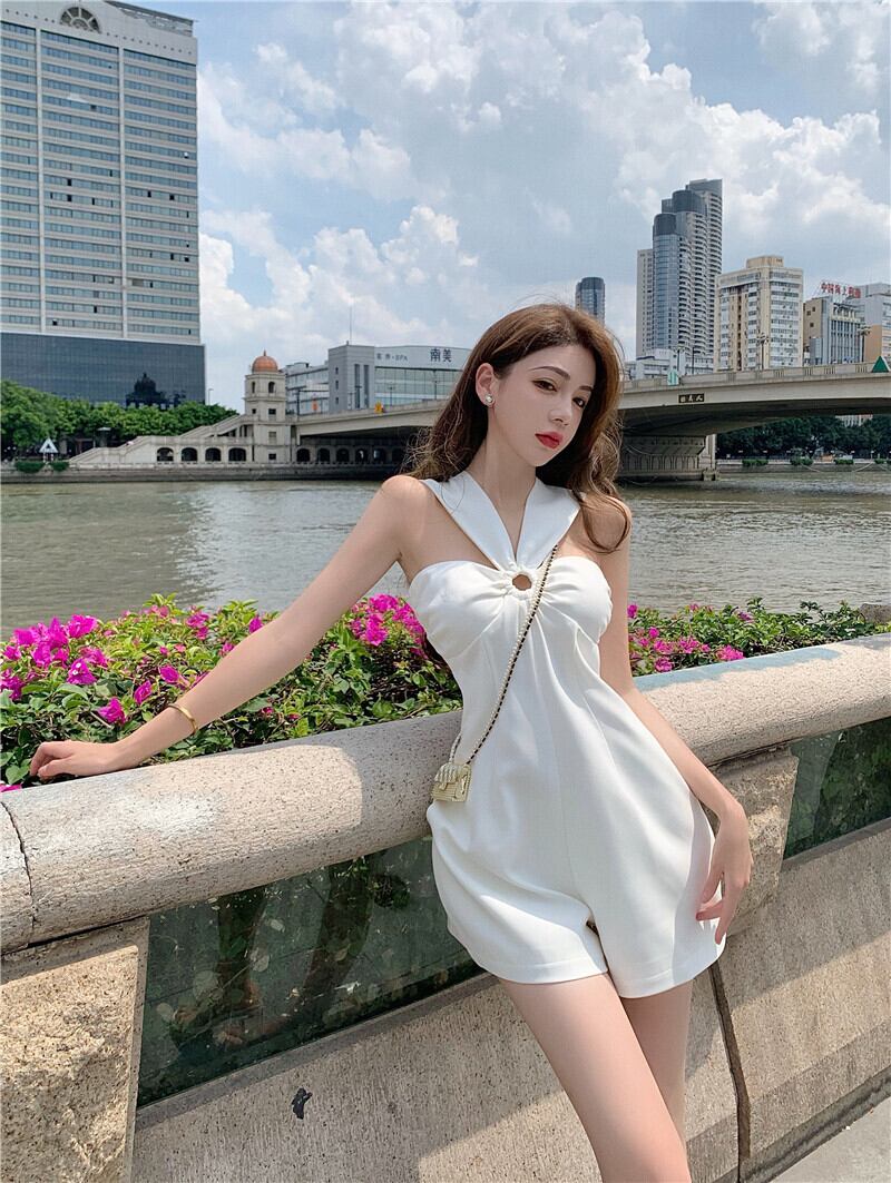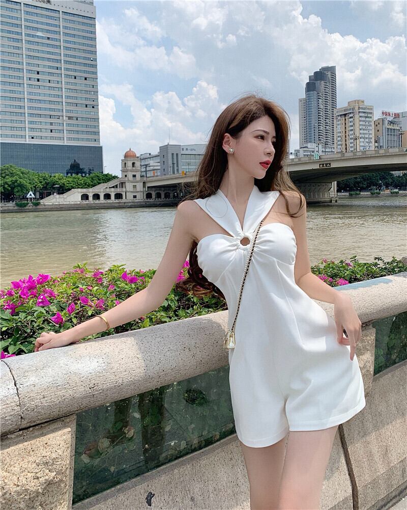 ジャンプスーツ オールインワン ホワイトハイウェストウェスト薄手ショーツ サマートップス パンツ 夏物 ブルマー ブラックストロベリース72710006063