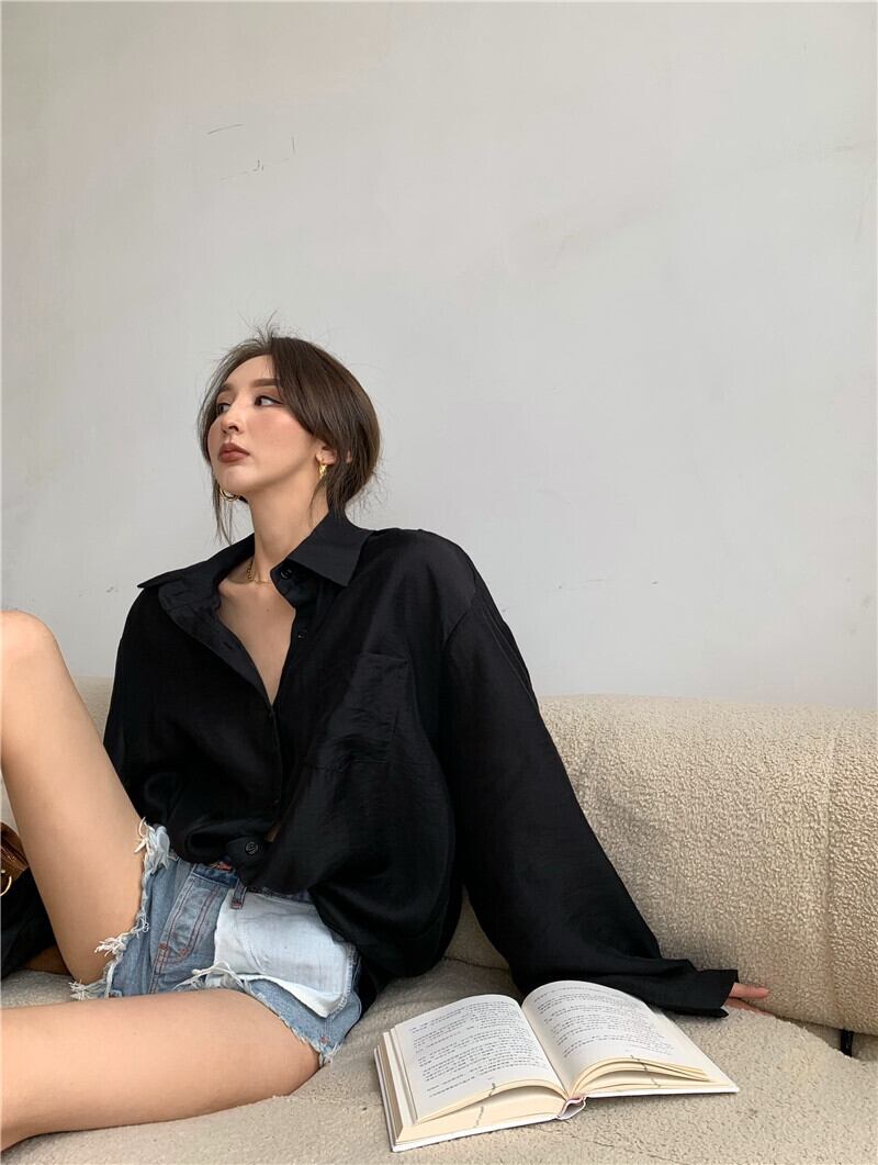 色:黒いシャツ,デニムショートパンツ