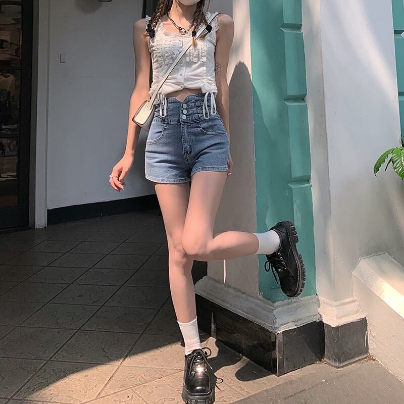 ジーンズ ハイウェストウェストスリムショーツ サマーパンツ 薄手 夏物 ブルマー ブラックストロベリース95518112034