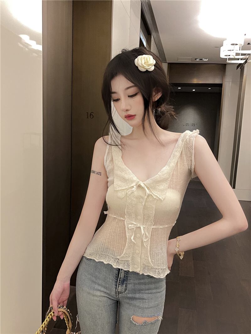 レースニットサマー薄手スタイルショートコート 大人ガーリー スウィート キュート カジュアル 夏物 ピュア ブラックストロベリース31376249525