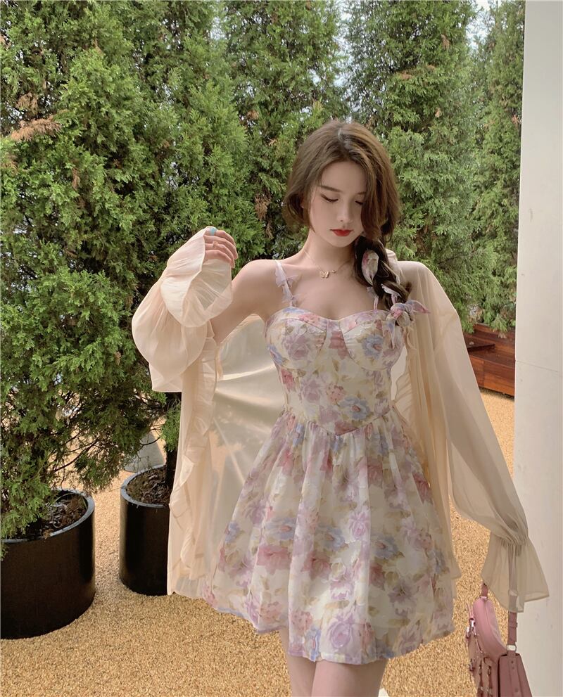 色:シャンパンアプリコットカーディガン,シンフォニーバタフライドレス