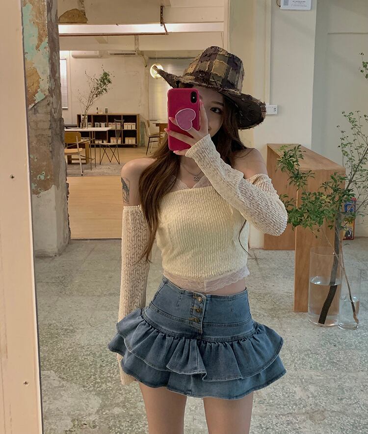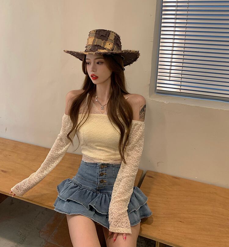 シフォンレースシャツ ショートサマースタイル ロング 夏物 ブラックストロベリース47322879876