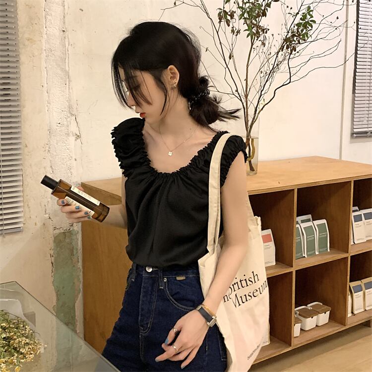 プリーツノースリーブサマーショートコート 大人ガーリー スウィート キュート カジュアル 夏物 ブラックストロベリース85503191694