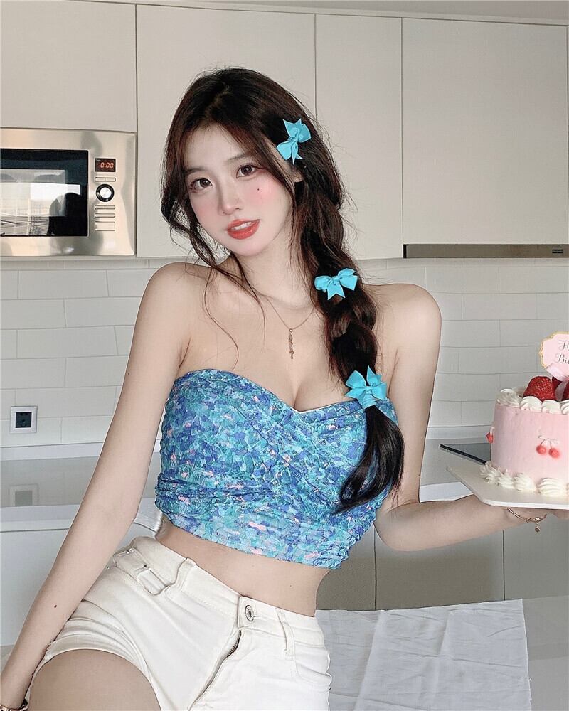 フローラルトップス サマー薄手ブラ ピンク 夏物 花柄 ピュア ブラックストロベリース63795621110