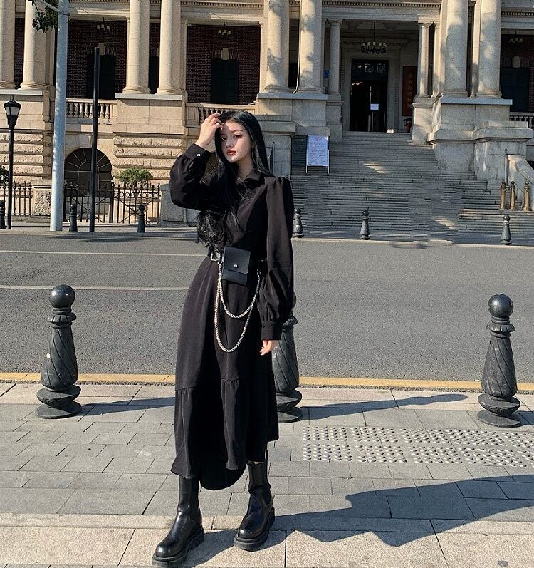 ドレス スタイルブラックスカート スプリングウェストスリム ロング 春物 ブラックストロベリース97853592106
