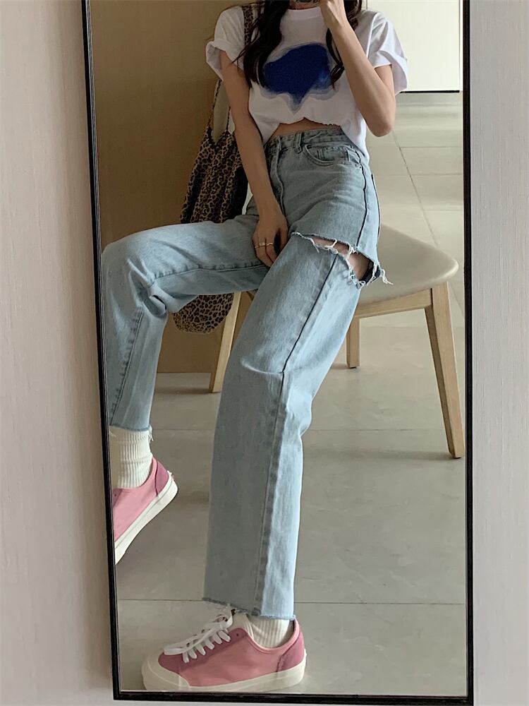 ジーンズ ハイウェストウェストスリムサマールーズクロップド 夏物 ブラックストロベリース58284413075