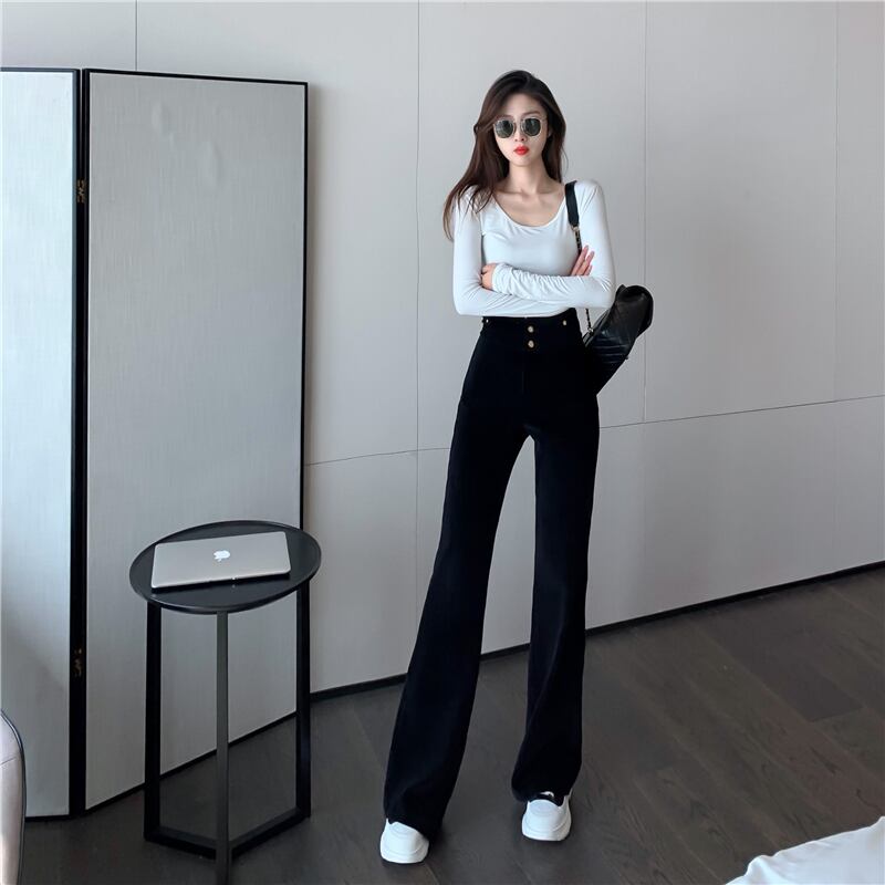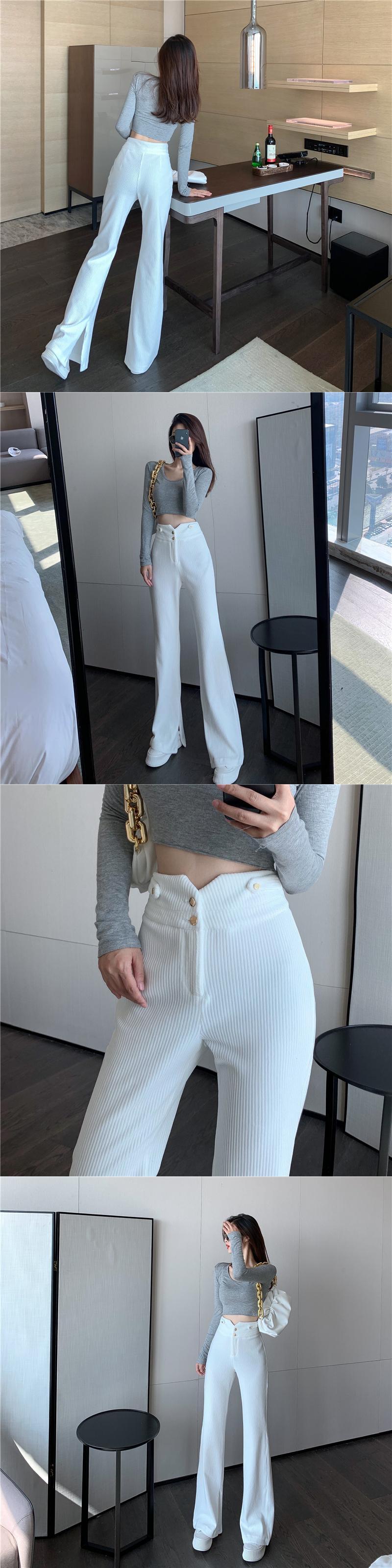 パンツ ハイウェストウェストスリムホワイトルーズスプリングコーデュロイ 春物 ブラックストロベリース50544833802