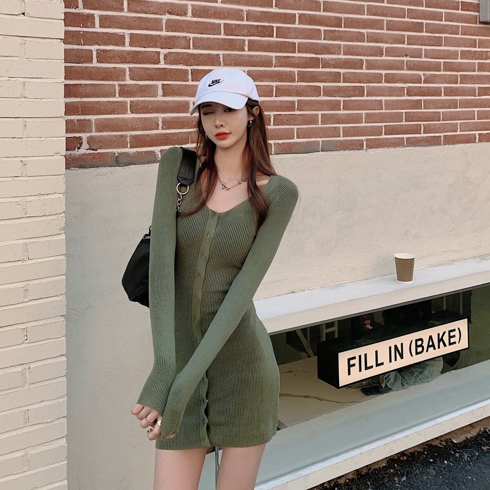 ニットドレス スカート スプリングブラックウェスト ロング 春物 ブラックストロベリース47096974901