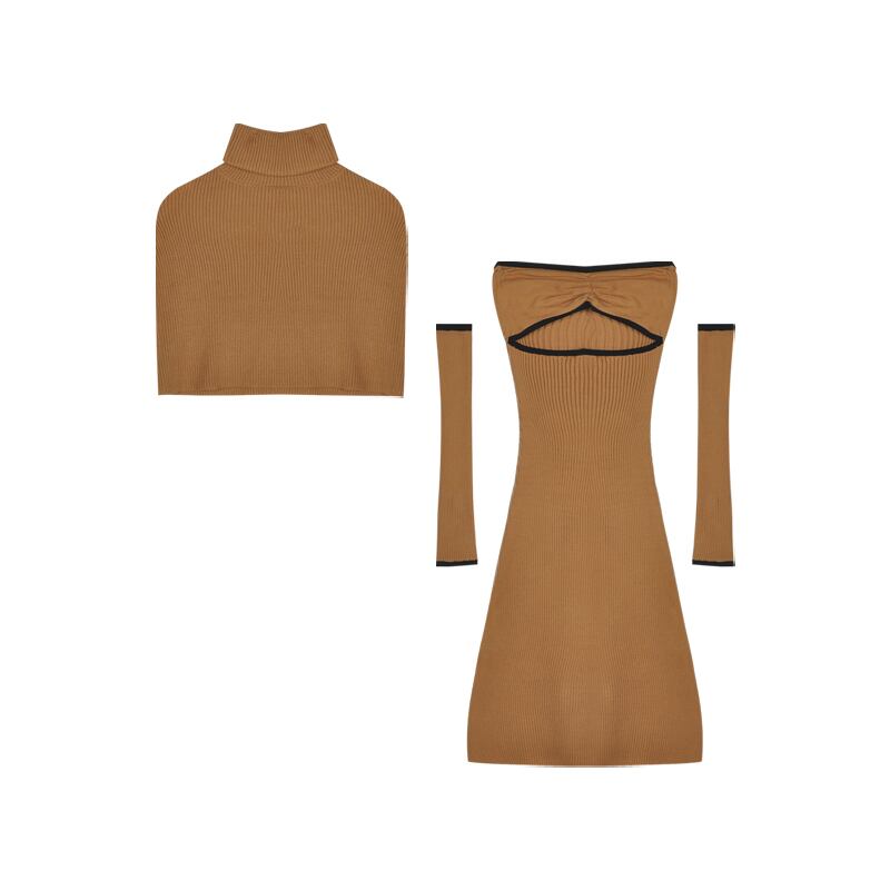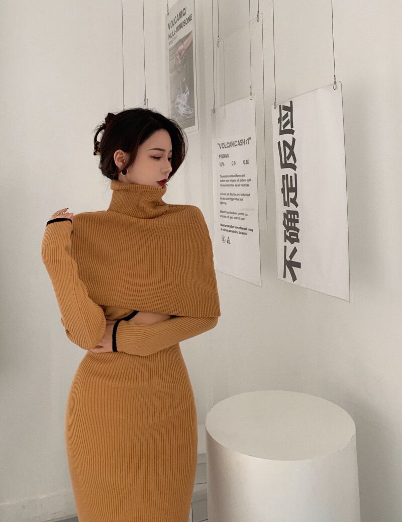 ニットセーター ドレス トップス ストラップレススカート スプリング ロング 春物 ブラックストロベリース80223980552